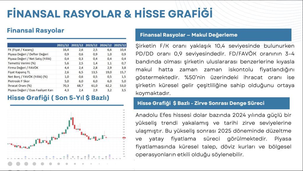 Net Borç / FAVÖK oranının 1–1,5 bandında seyretmesi, şirketin