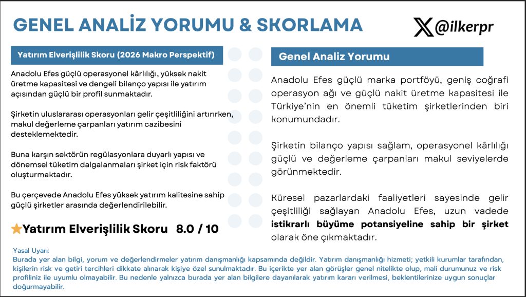 Bu çerçevede Anadolu Efes yüksek yatırım kalitesine sahip