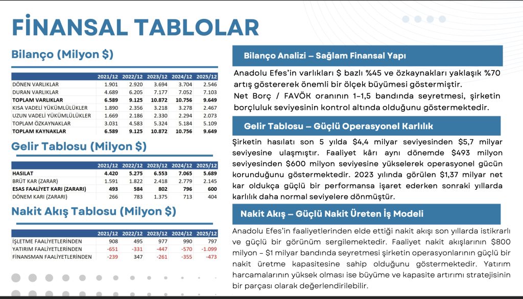 Anadolu Efes’in varlıkları $ bazlı %45 ve özkaynakları yaklaşık %70