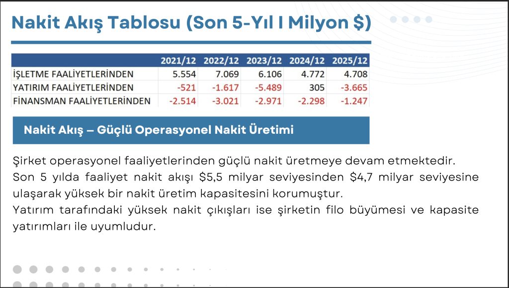 Yatırım tarafındaki yüksek nakit çıkışları ise şirketin filo büyümesi ve kapasite