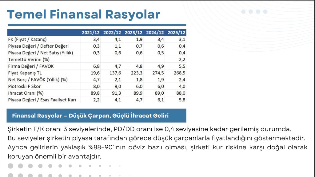Bu seviyeler şirketin piyasa tarafından görece düşük çarpanlarla fiyatlandığını göstermektedir.