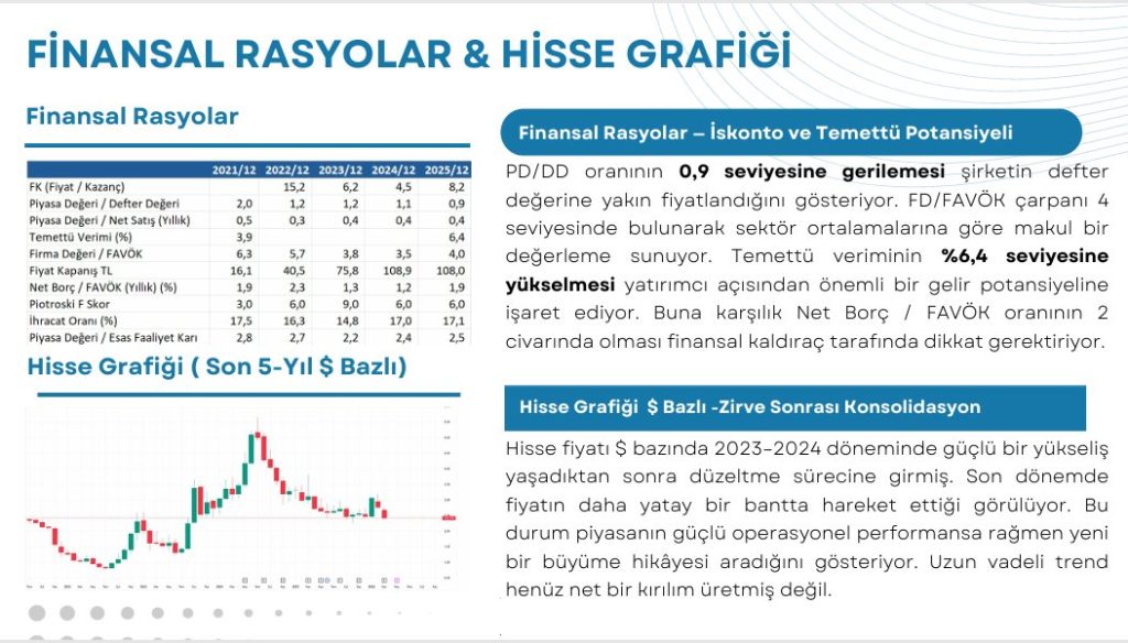Buna rağmen defter değerine yakın fiyatlama ve temettü potansiyeli şirketi uzun vadeli yatırımcılar için dikkat çekici kılıyor.
